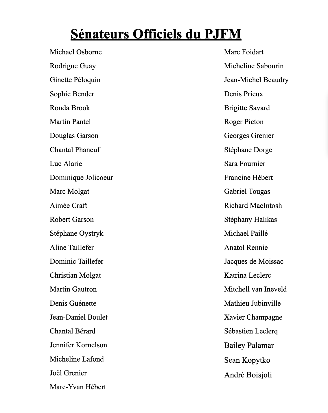 Qu’est-ce qu’une Sénatrice ou un Sénateur du PJFM? Selon notre Constitution amendée le 18-05-2020: